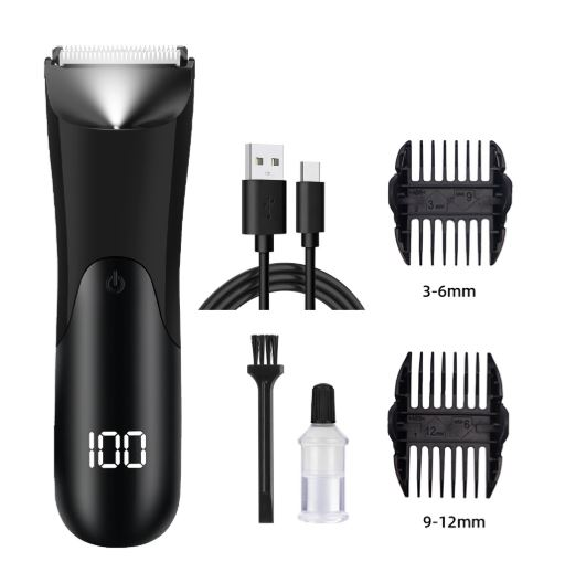 Smart LCD Body Hair Trimmer – Rechargeable, Ceramic Blade, Detachable Washable Head