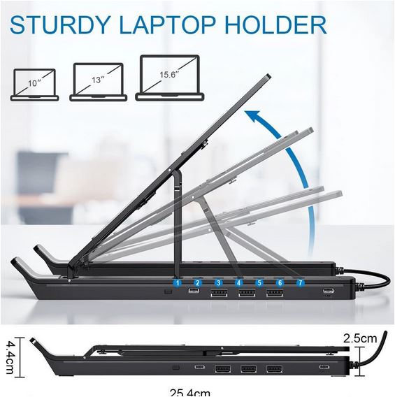 | عنوان انگلیسی | Aluminum Laptop Stand with RGB Lighting and 4-Port USB Hub |