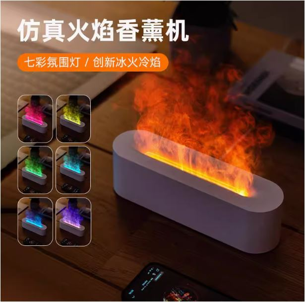 دستگاه ترکیبی بخور سرد و رایحه‌پراکن با نور شعله‌ای هفت‌رنگ، ایده‌آل برای ایجاد فضای دلپذیر در خانه یا محل کار