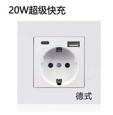 European Style Wall Socket with USB & Type-C Fast Charge
