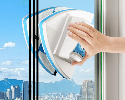 شیشهپاککن حرفهای دوطرفه با قدرت مغناطیسی قابل تنظیم، مناسب تمیز کردن شیشههای دوبل در طبقات بالا.
