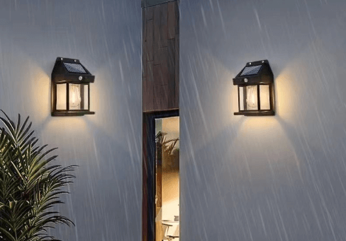 چراغ خورشیدی دیواری با طراحی فیلامنتی و سبک نوستالژیک، دارای سنسور حرکتی و مناسب فضاهای باز